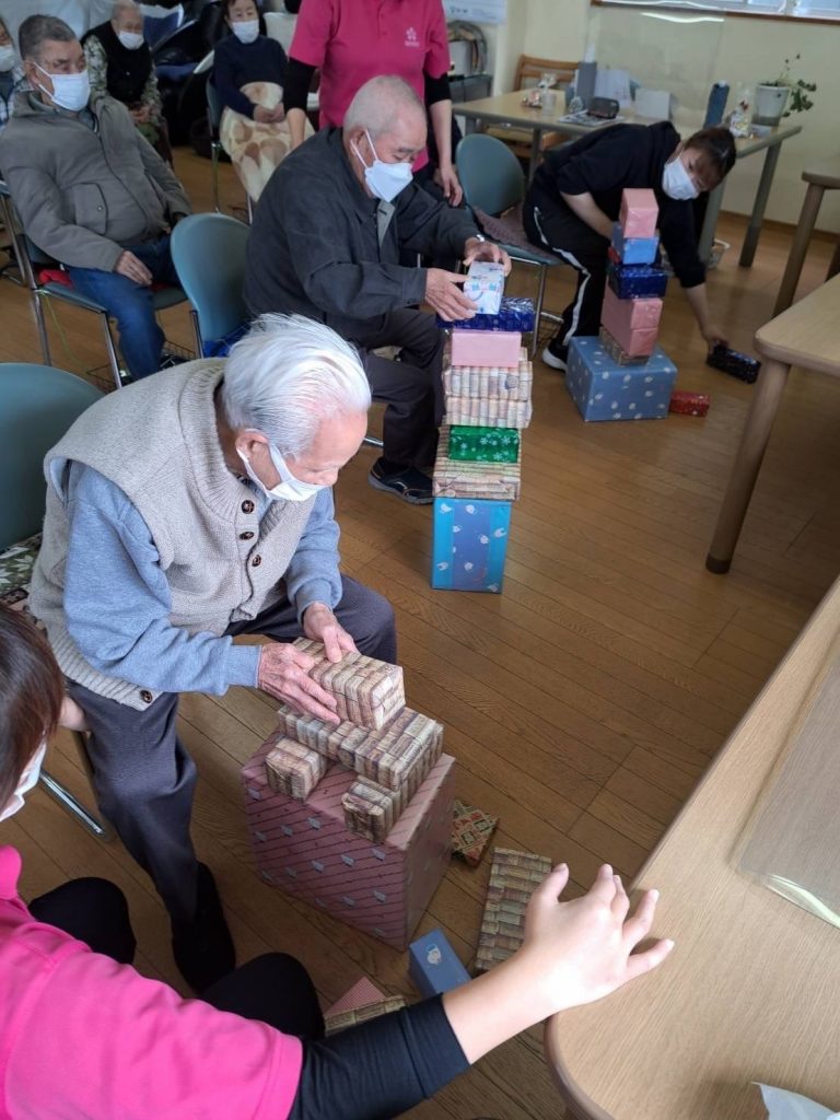 レクリエーションでは、ビンゴゲームやプレゼント積み上げ競争など、盛大に楽しみました!