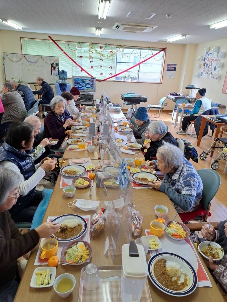 食事にはカレー、おやつにはショートケーキと、食にもクリスマス感を出し、皆様に食べていただきました!