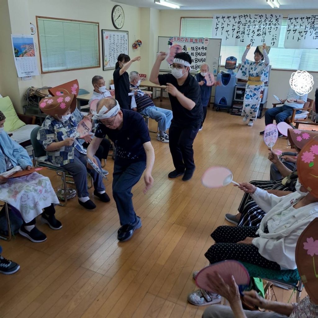 デイサービスセンターあすなろ8月は阿波踊りをみんなで賑やかに楽しみました!