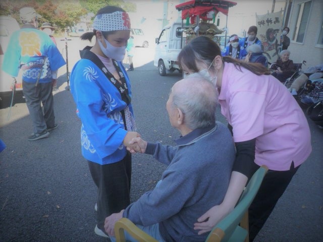 子供神輿【2022年11月】 グループホームさくら 2022.11.032024.11.18 3年ぶりに子供神輿が開催されました。 子供たちを優しい眼差しで見守られ、太鼓のリズムに合わせて手拍子したりと久しぶりの地域の行事を楽しまれていました。
