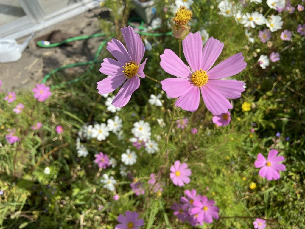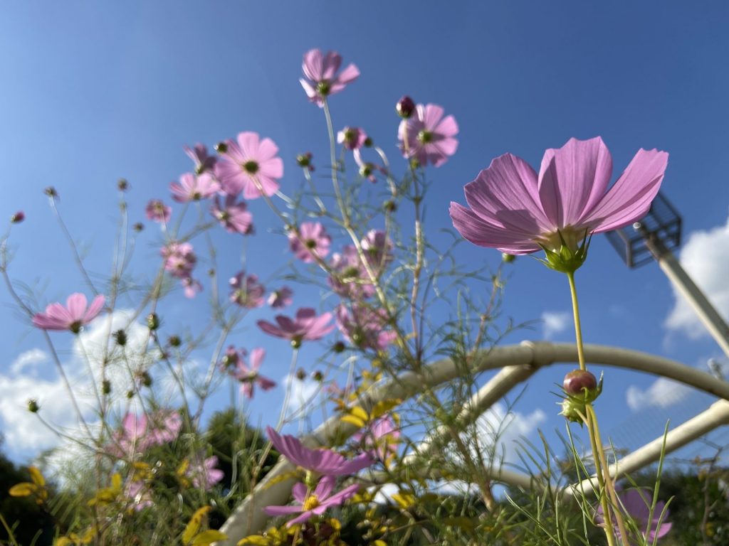 コスモス【2021年10月】 さくらの郷 2021.10.142024.11.18 リハビリ室から見えるコスモスが見ごろの時期となりました。 背の高さは不揃いですが、綺麗に咲いています。 入所者様にも見ていただき、季節感を感じていただいています。
