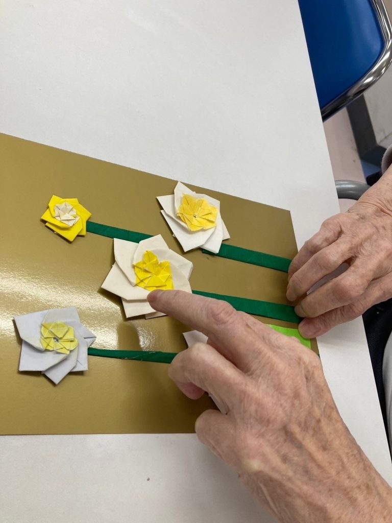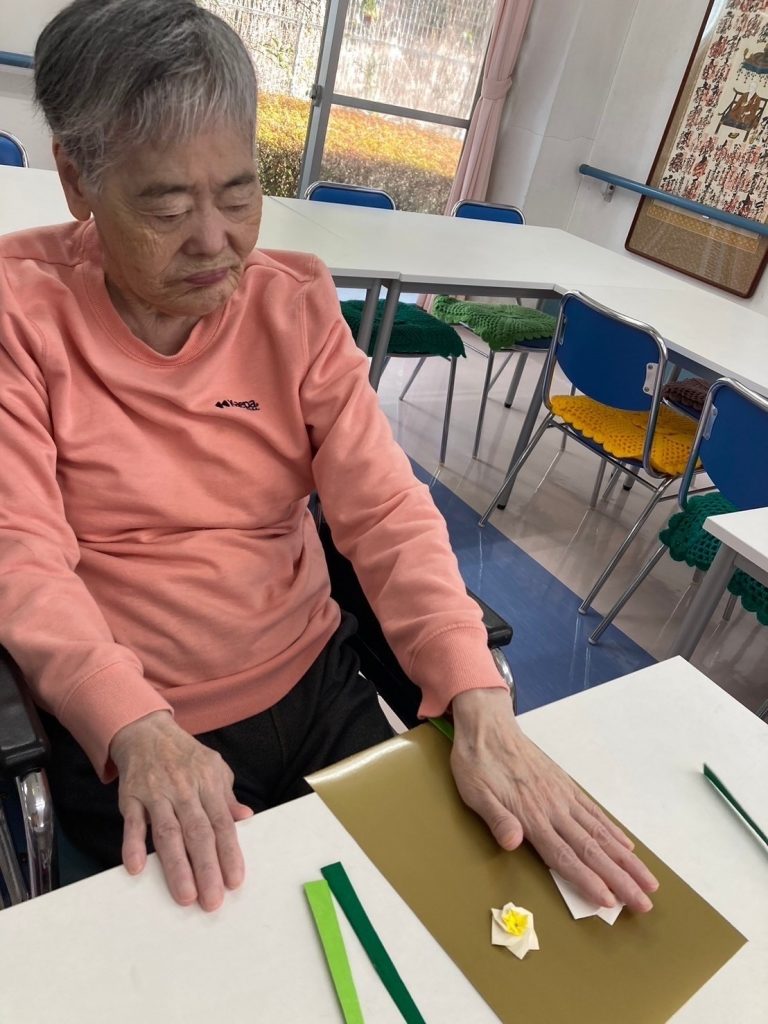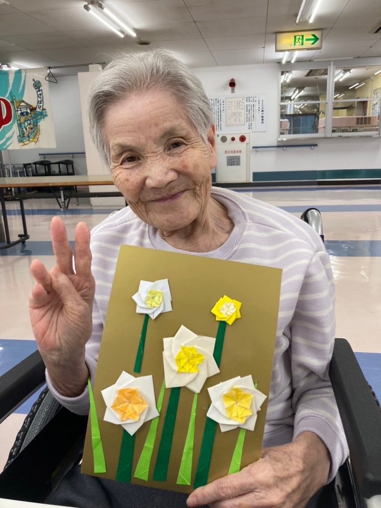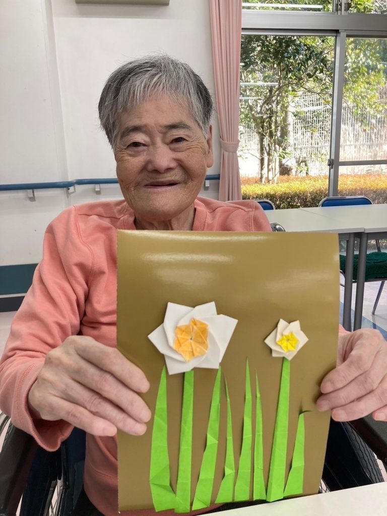 水仙(貼り絵)【2024年2月】 さくらの郷 2024.02.232024.11.18 入所者様に水仙の貼り絵を作っていただきました! みなさん集中して作成してくださり、完成した作品を持ってハイチーズ! 皆さま笑顔が素敵でした!