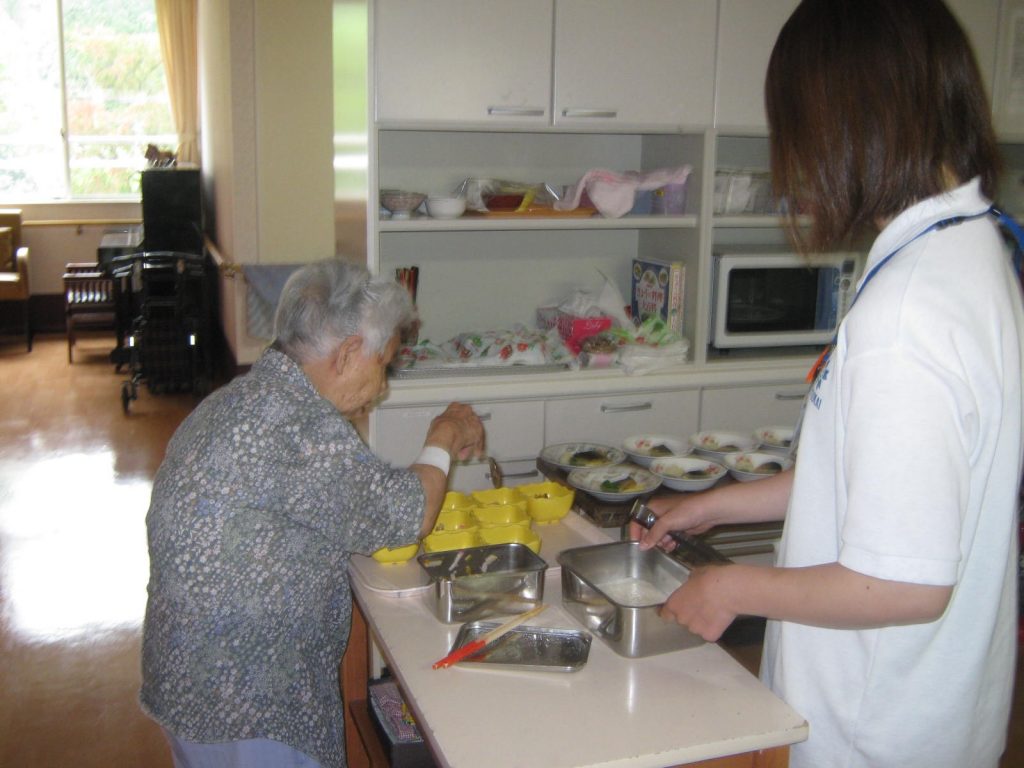 入居者様の能力に応じて、食事作りや掃除、洗濯など職員と共に協力しながら行います。