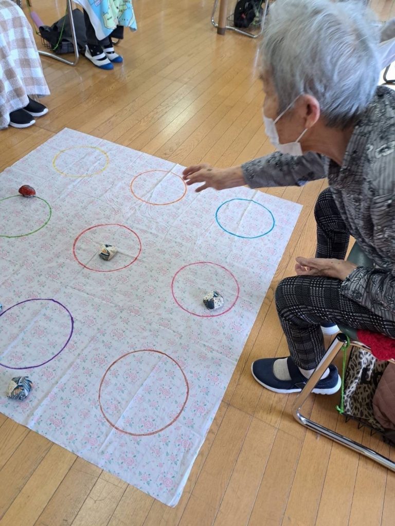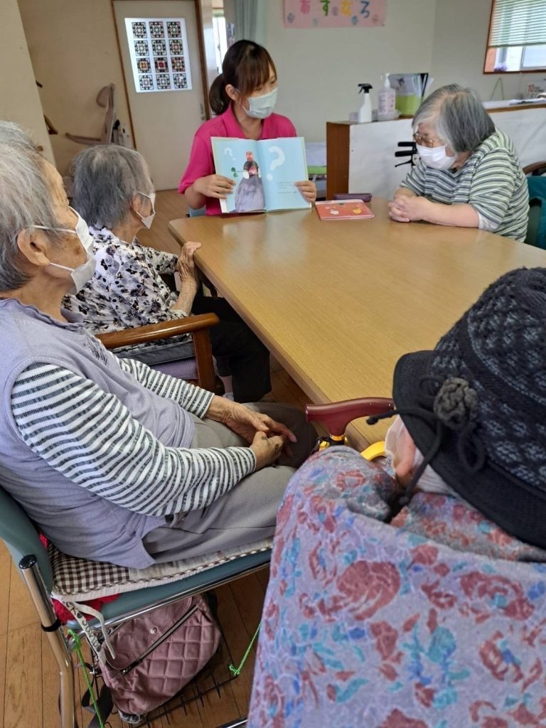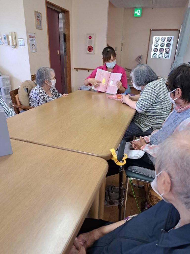 あすなろではお手玉ビンゴゲームで体を動かしたり、皆様と一緒に絵本を読んだりと、日々様々な活動をして過ごしています。