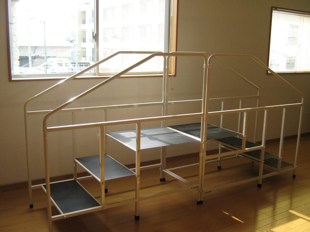 フロアを拡大し、従来の物療機器や歩行訓練用の平行棒に加え、階段昇降器、マッサージチェアなどの機器を新たに導入し、リハビリ機能の強化を図りました。