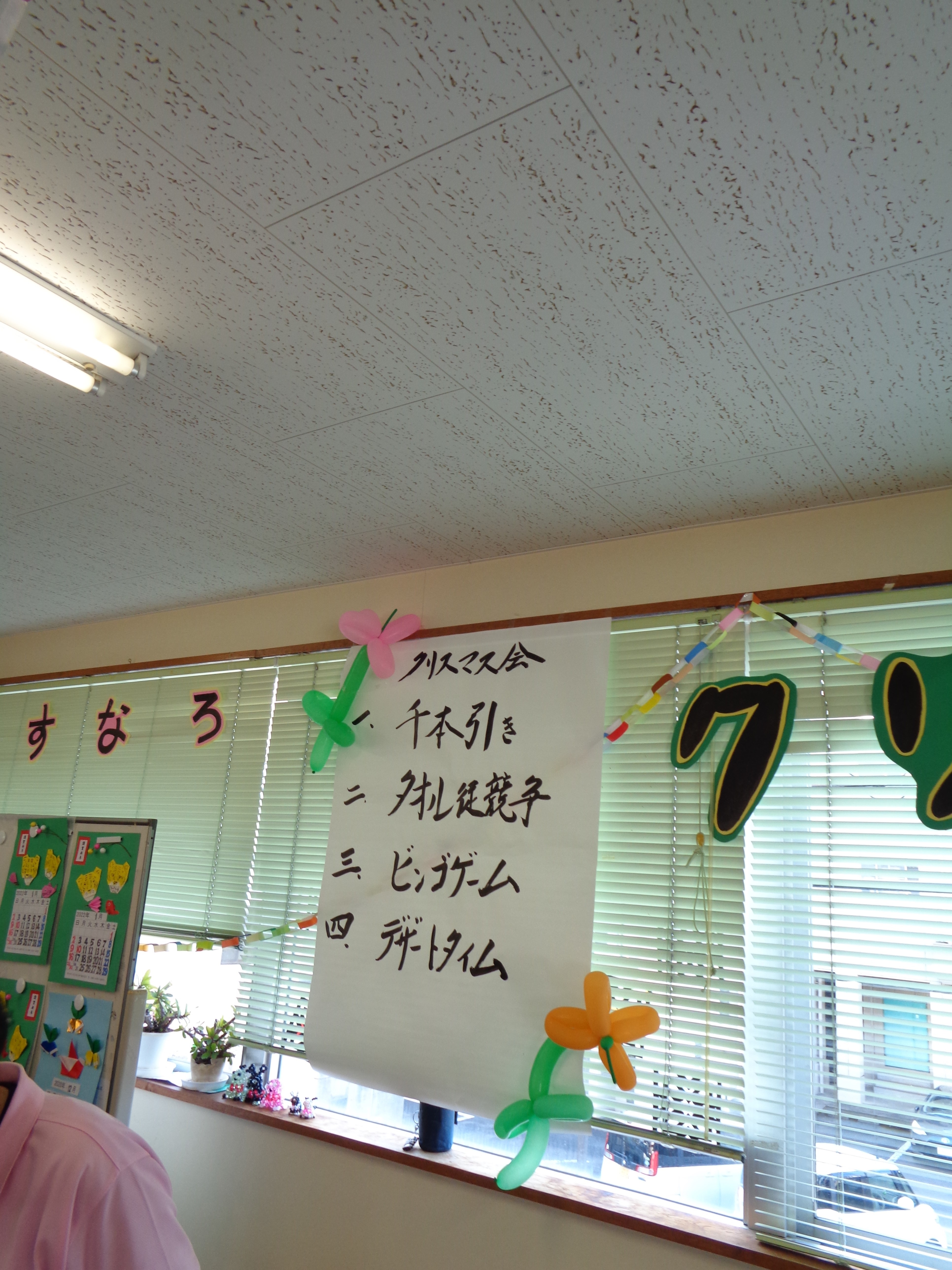 あつあつでおいしいと好評でした。手作りマスコットのプレゼントやビンゴゲーム、クリスマスケーキなど楽しい時間を過ごしました。