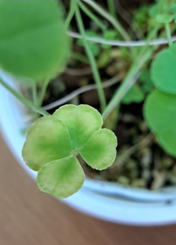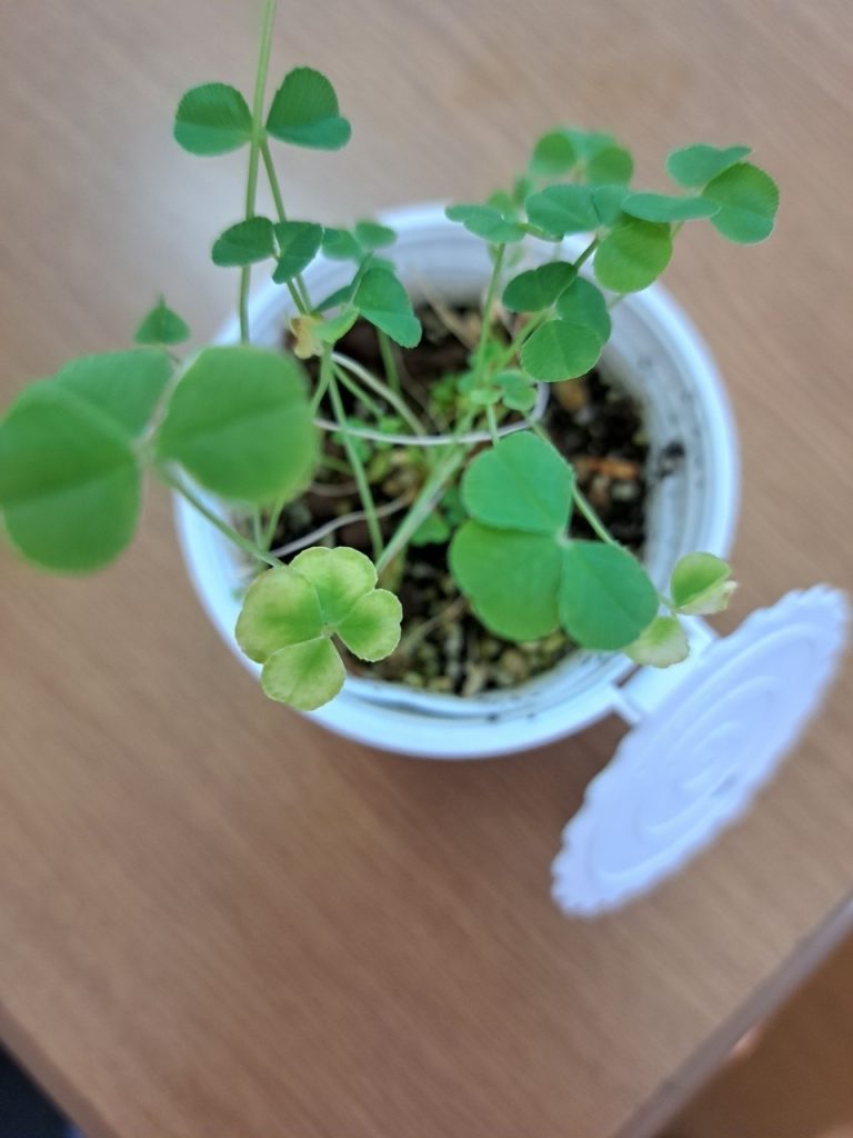 鉢植えの🍀クローバーから四つ葉のクローバーが見つかりました!