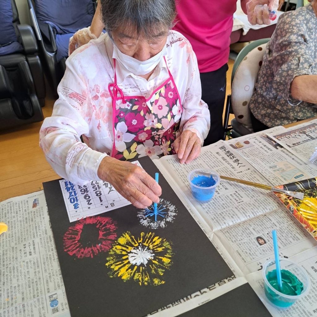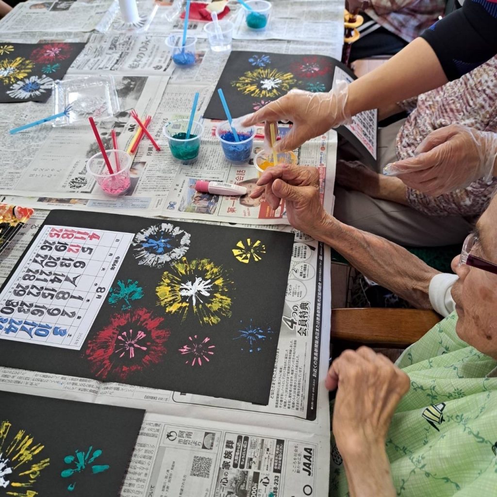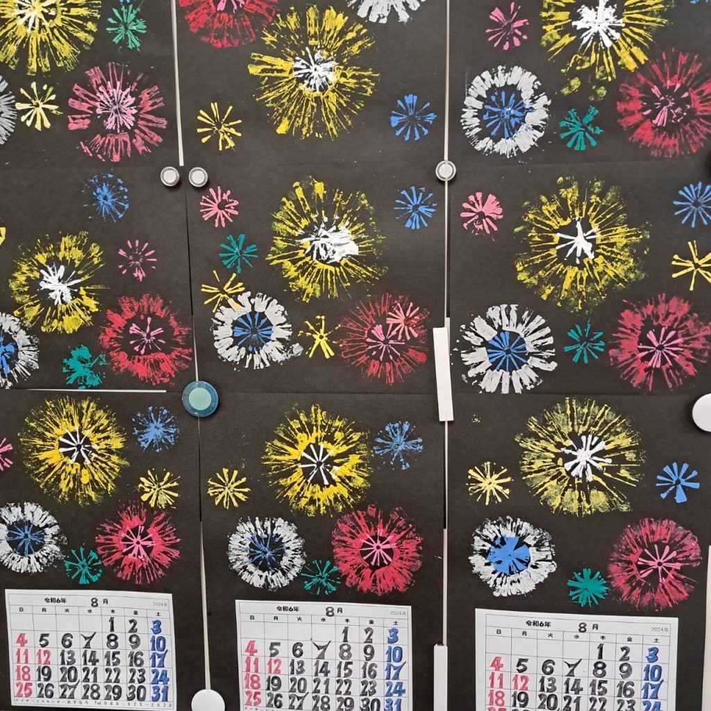 8月のカレンダーは手作りスタンプで花火を作りました🎆