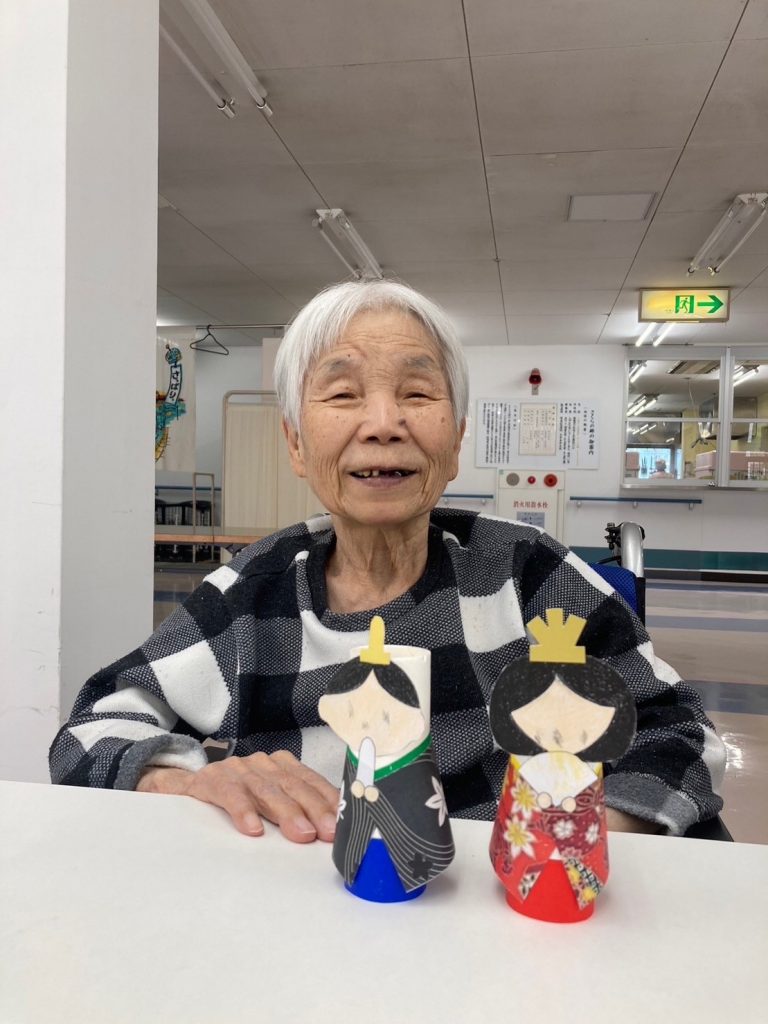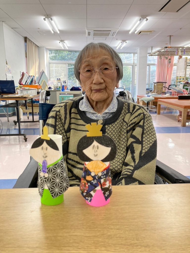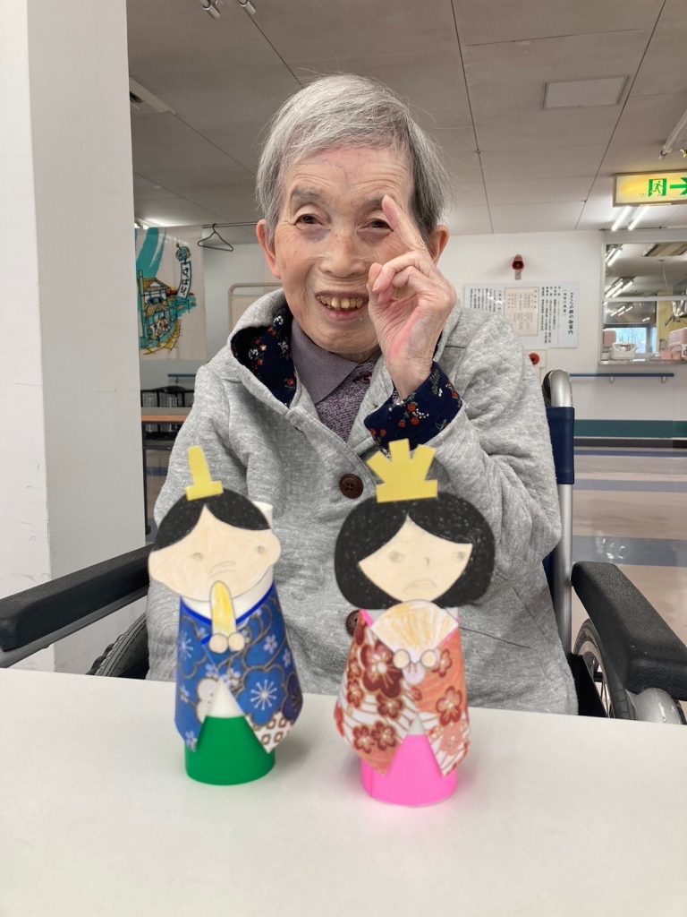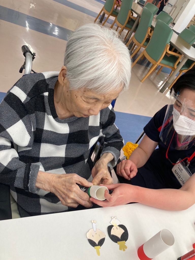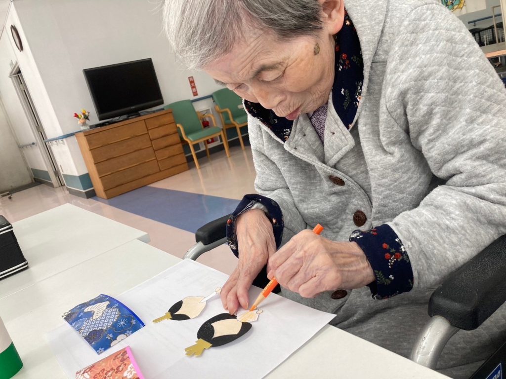 入所者様には着物の色を選んでいただき、目入れや扇子の色付け、貼り付け作業をしていただきました!