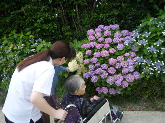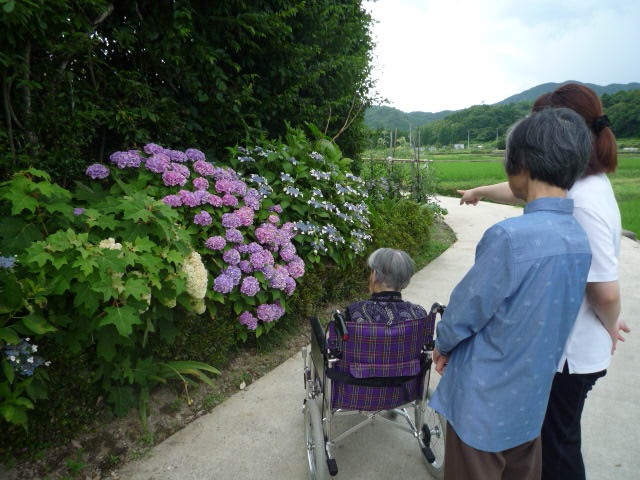 グループホームさくらグループホームさくらでは散歩を兼ねて施設周辺に咲いていた紫陽花見物に行きました。