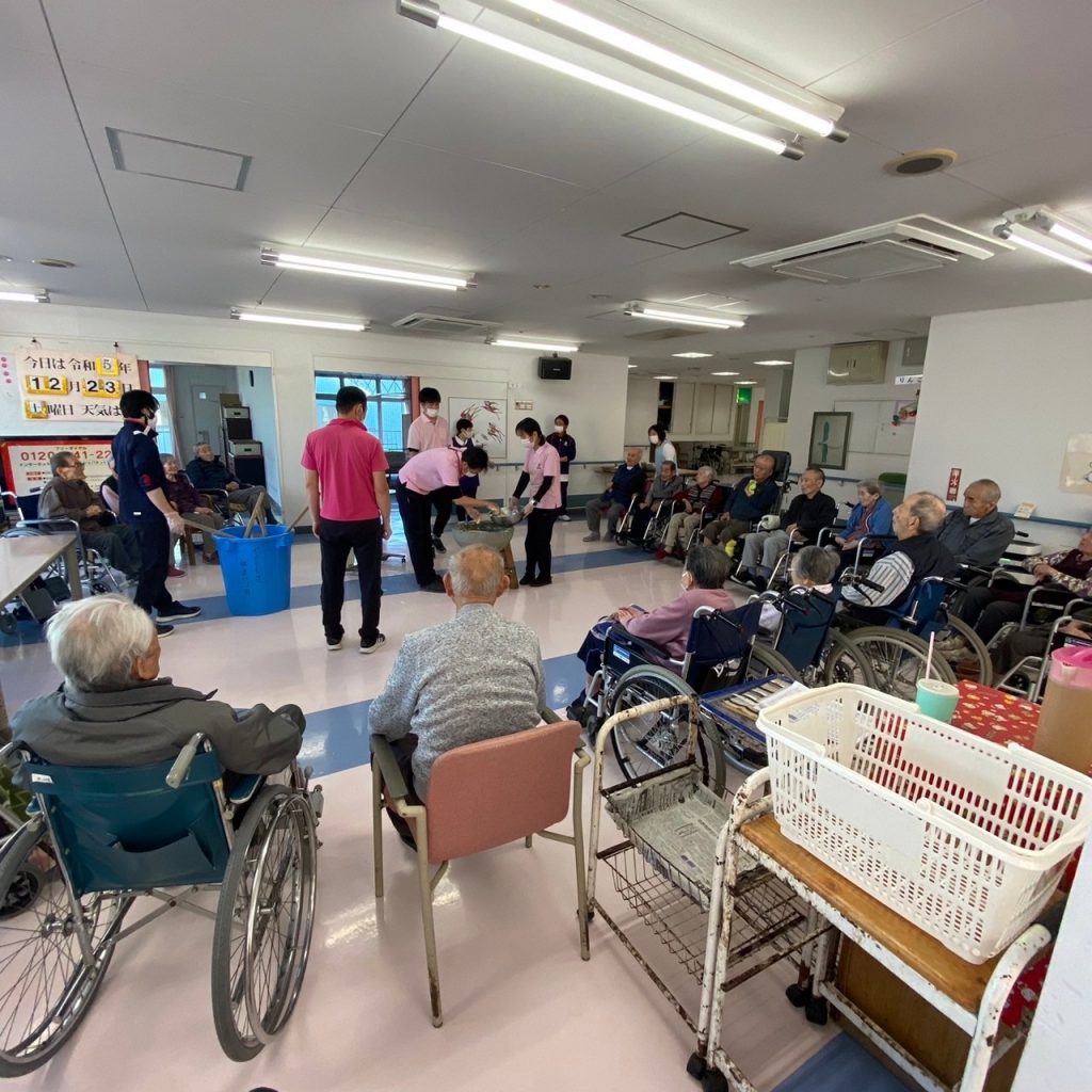 入所様にも「やっ!ぽん!ぱい!」の掛け声で、力強くついていただきました。