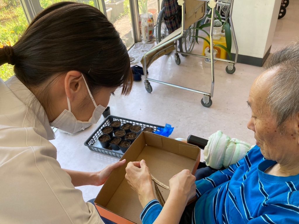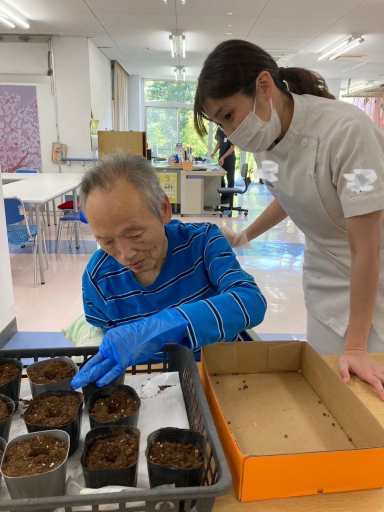 オクラ栽培【2023年6月】 さくらの郷 2023.06.152024.11.18 リハビリの学生と一緒にオクラ栽培をしていただきました! 種取りから種まき、水やりまで一緒にしていただき、楽しそうに取り組まれていました! 立派に大きくなりますように!