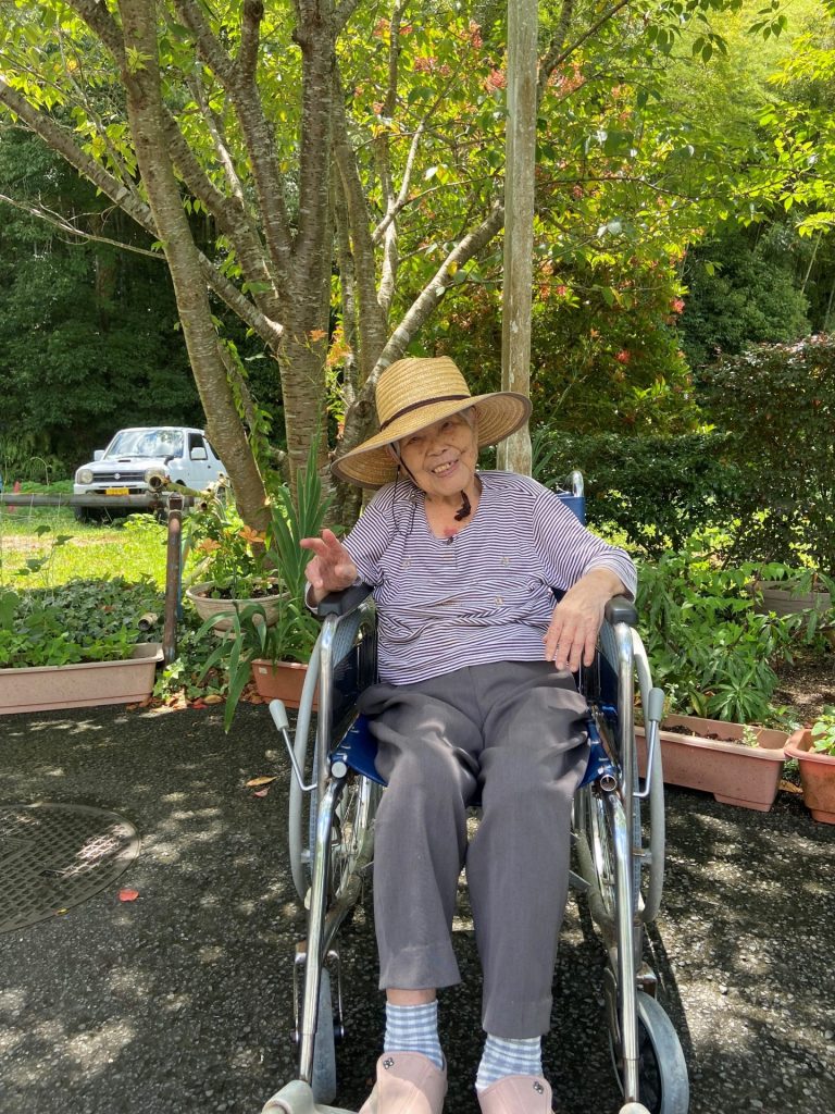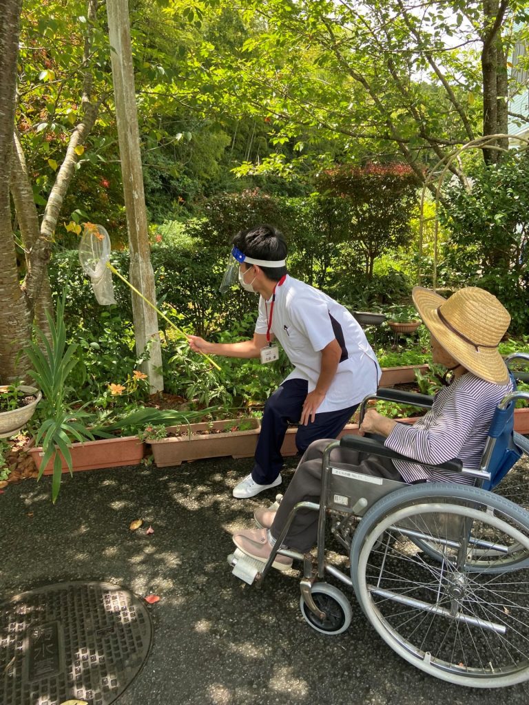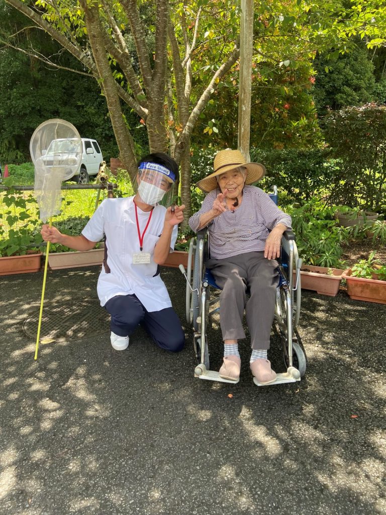 さくらの郷では、気分転換や季節を感じていただくため、職員と一緒に施設周辺を散歩することがあります。