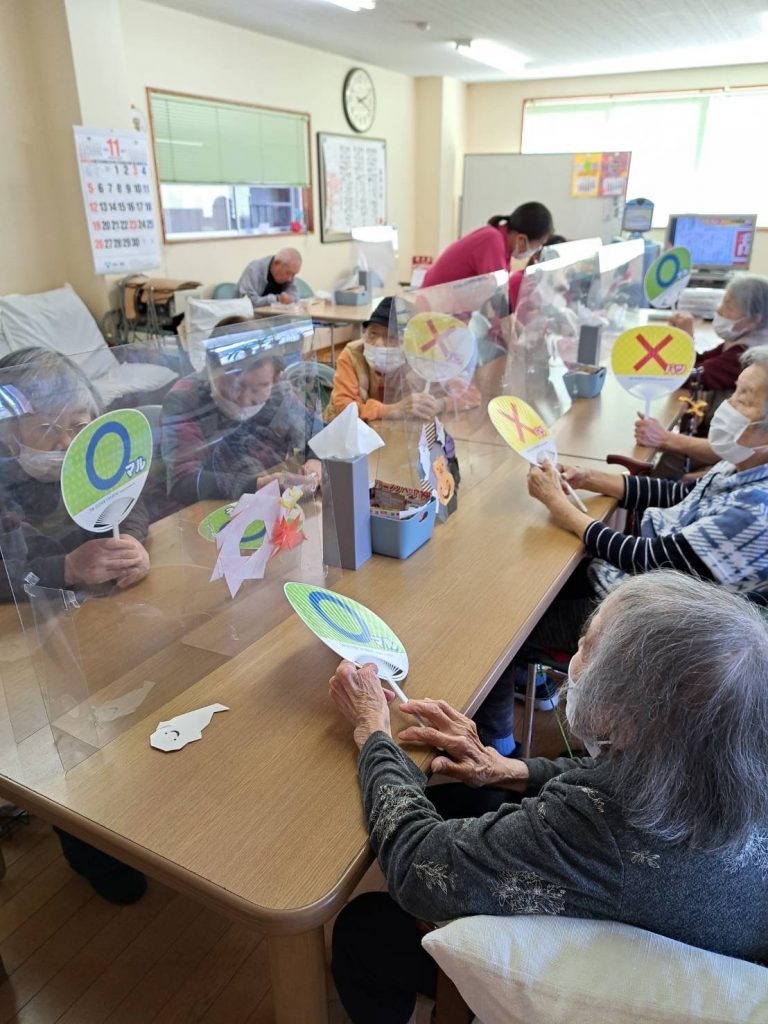 先日、レクリエーションとして丸バツクイズやパチンコゲームを楽しみました!