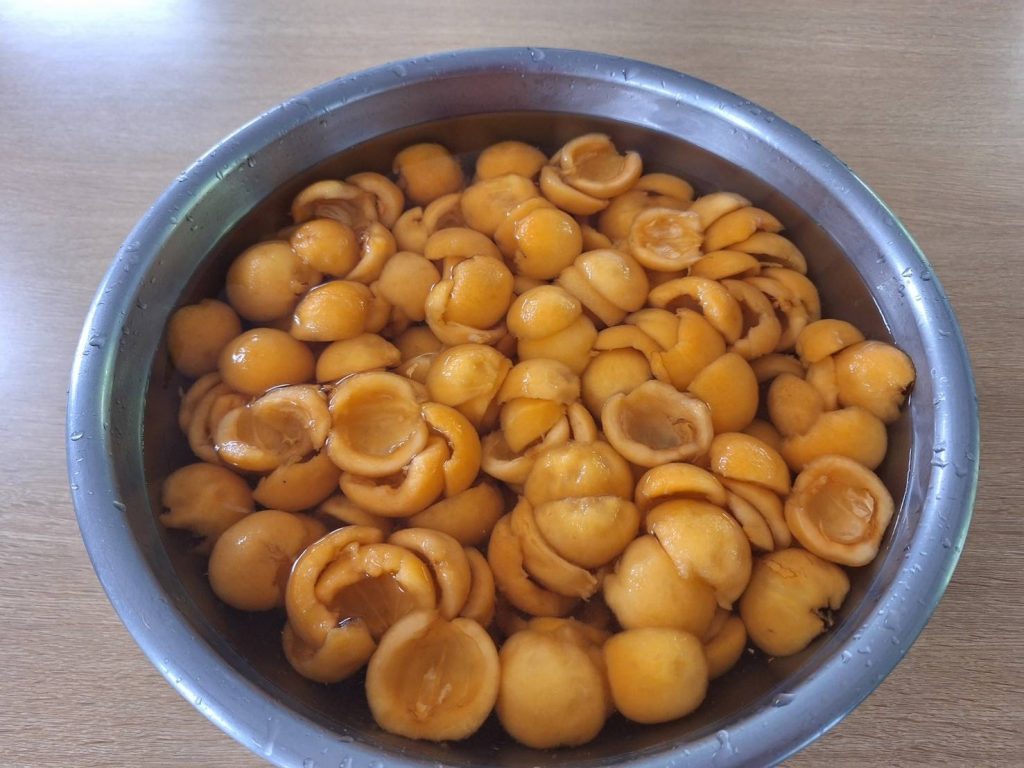 お誕生会前日にビワをバケツ一杯収穫し、皮をむいてコンポートを作り、お誕生会当日に振る舞いました。
