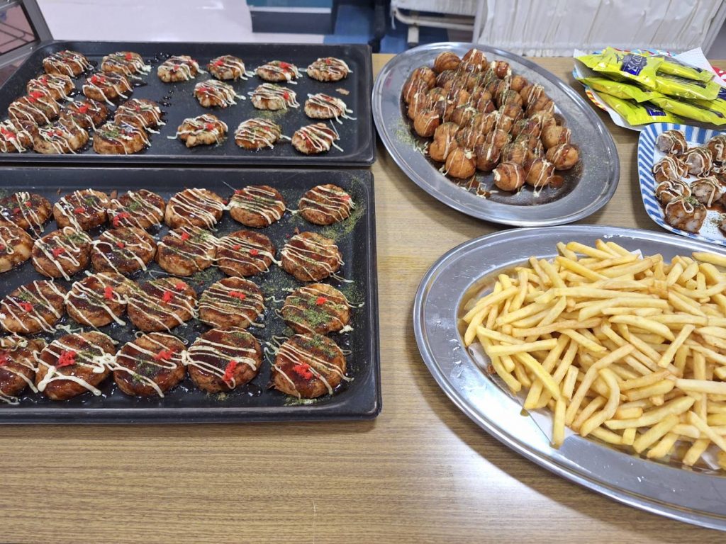 今月のお誕生会では、ミニお好み焼き、たこ焼き、フライドポテトでお祝いしました🎉