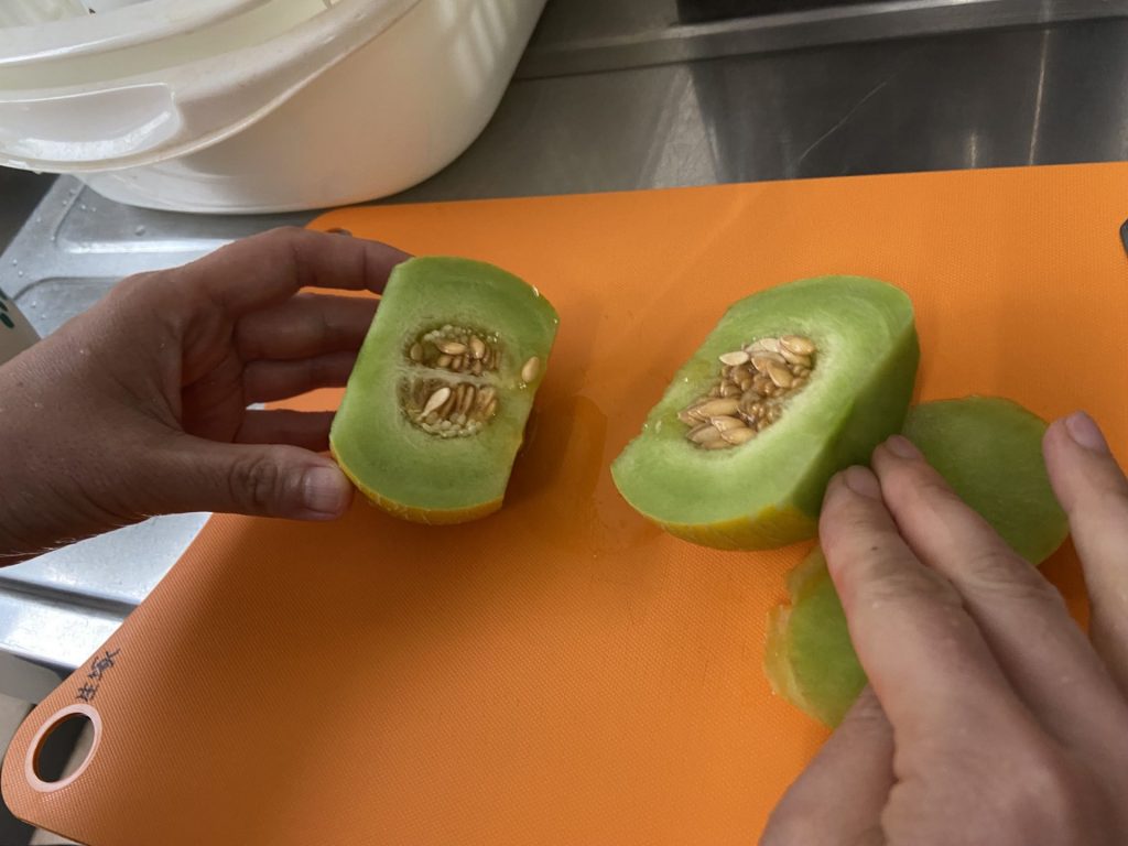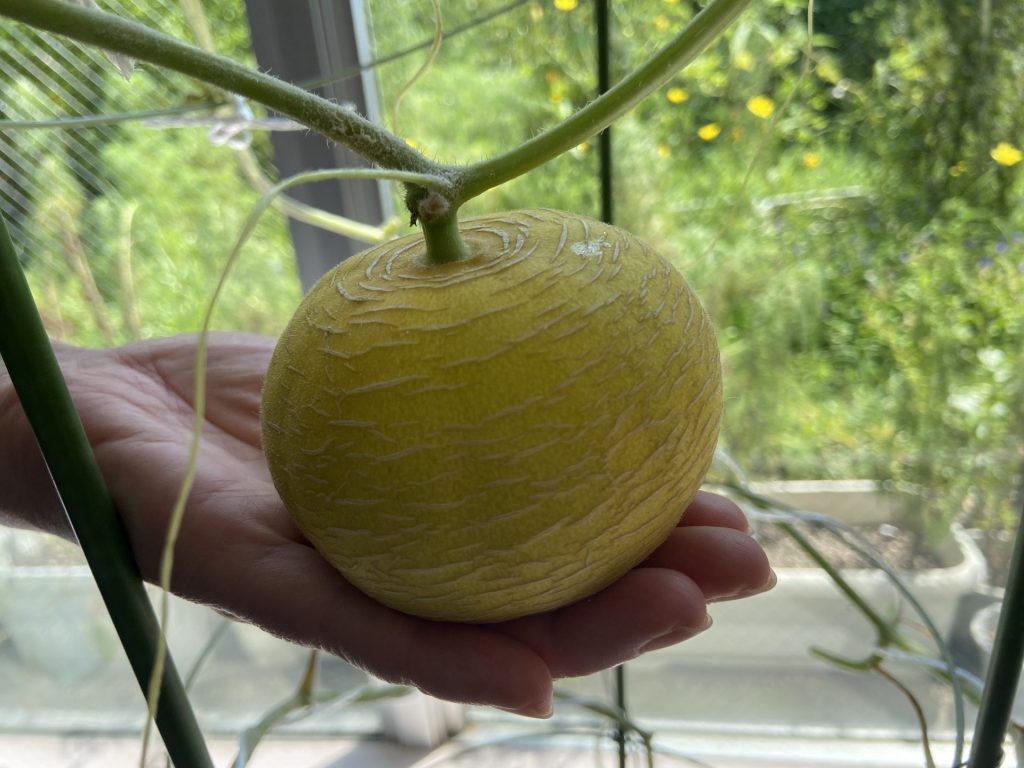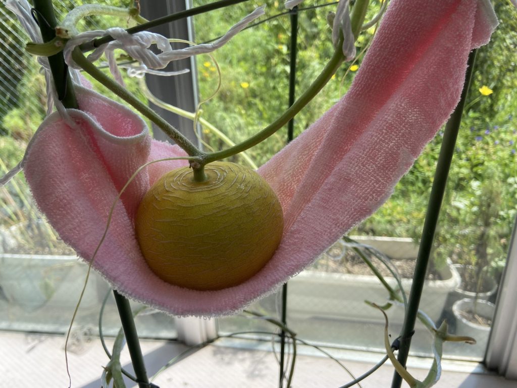 栽培は難しく、最終的に実として成長したのはひとつでしたが、立派なメロンでした!