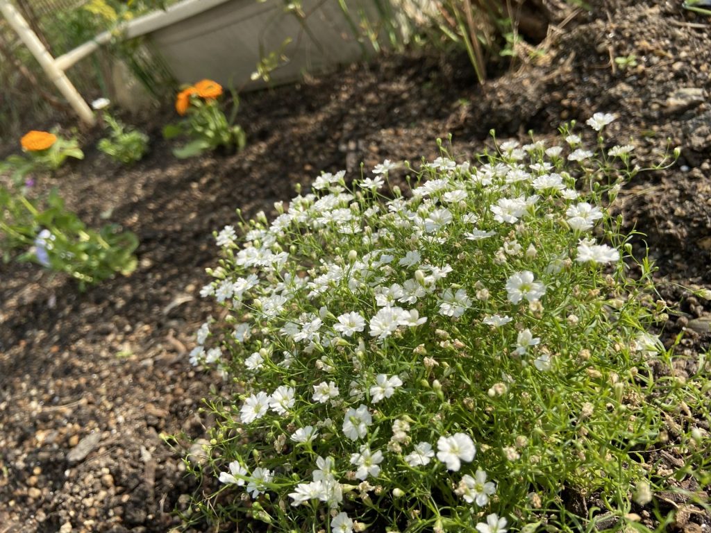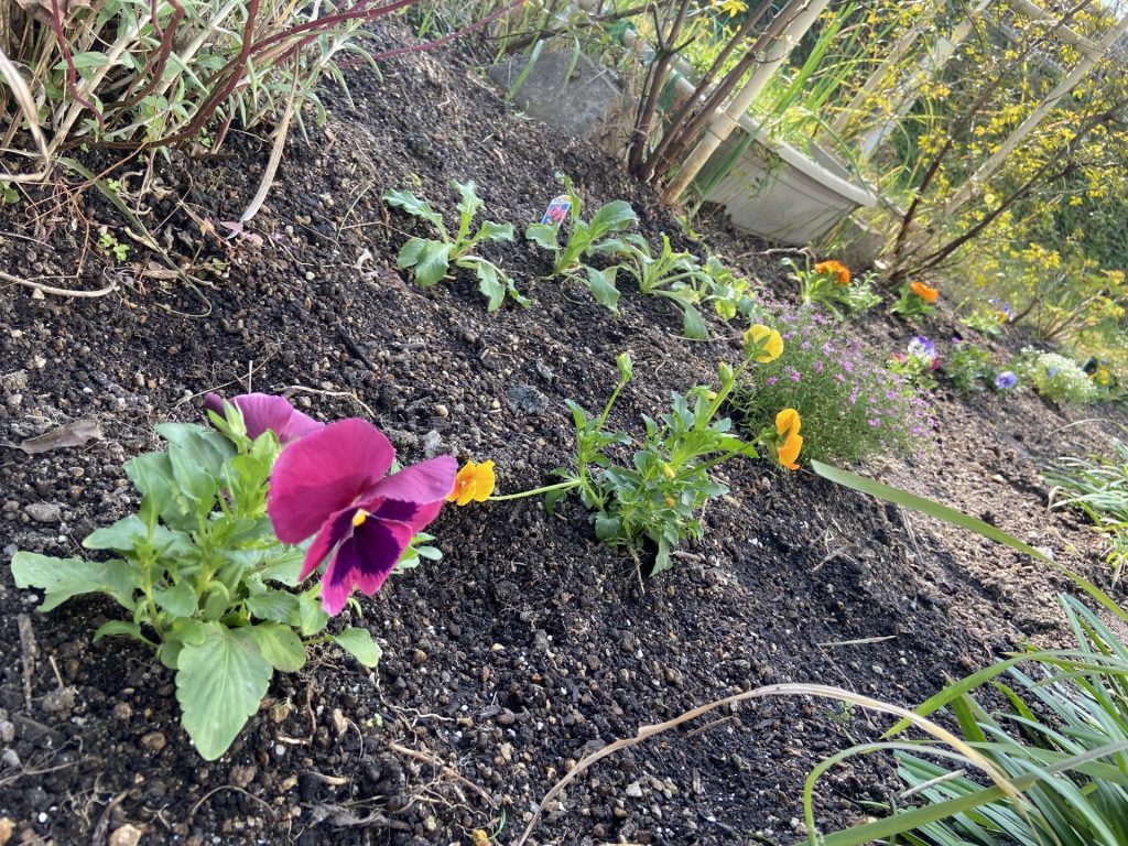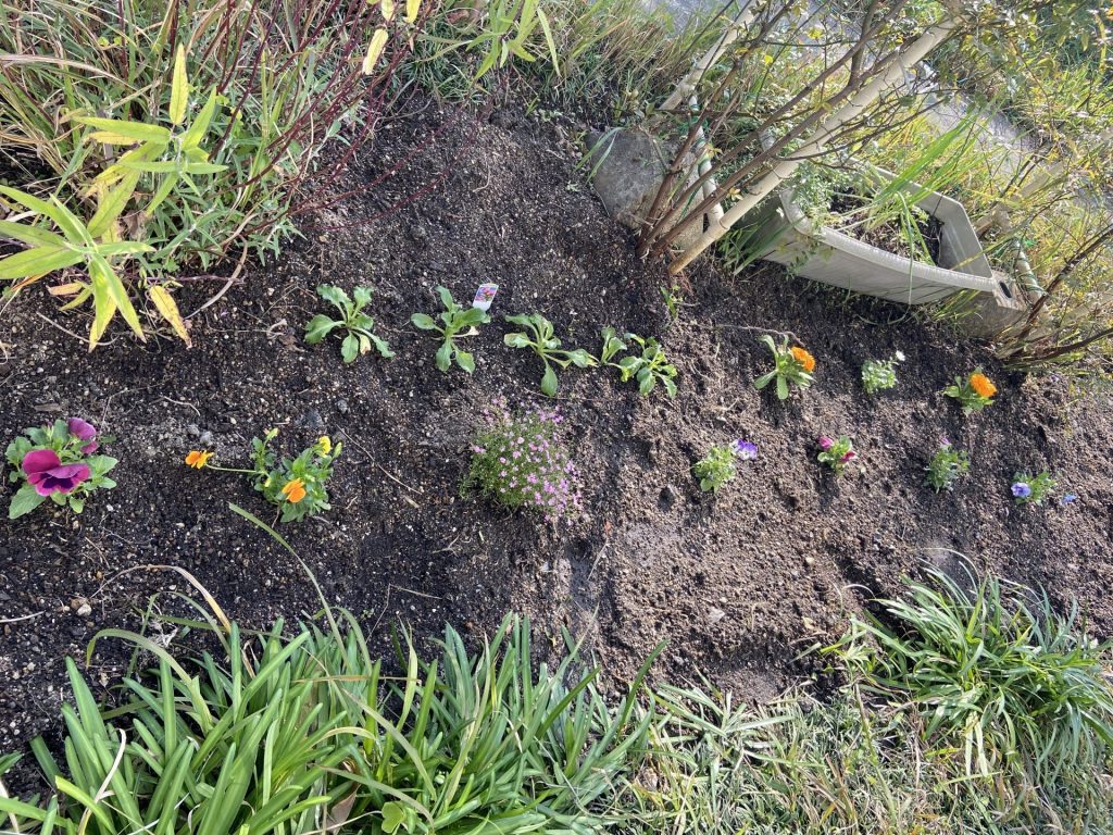 先日、時期を終えたコスモスや夏スミレを抜き、新たに、パンジー、ビオラ、キンセンカ、カスミソウ、ノースボール、つりがね草、6種類の花の苗を植えました。