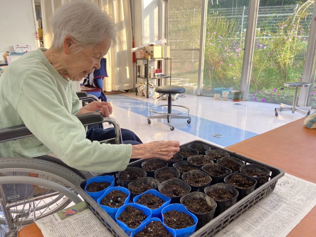 さくらの郷農園2020年10月 さくらの郷 2020.10.242024.11.18 さくらの郷では、新たにブロッコリーの苗を植え、大根、小松菜、ほうれん草、スナックエンドウの種をまきました。 入所者様にも一緒にしていただきました。 収穫に向け、入所者様と一緒に成長を楽しみながら育てていきたいと思います。