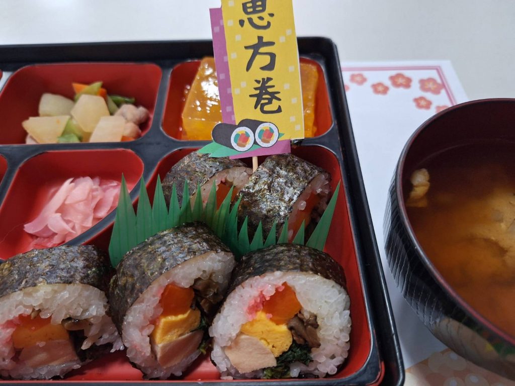 さくらの郷、クリニックデイケアでは2月3日、2月4日に昼食に恵方巻を振舞いました。