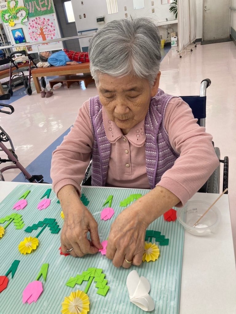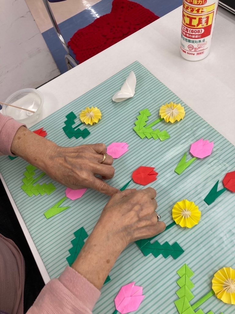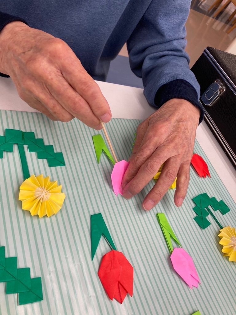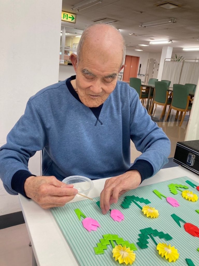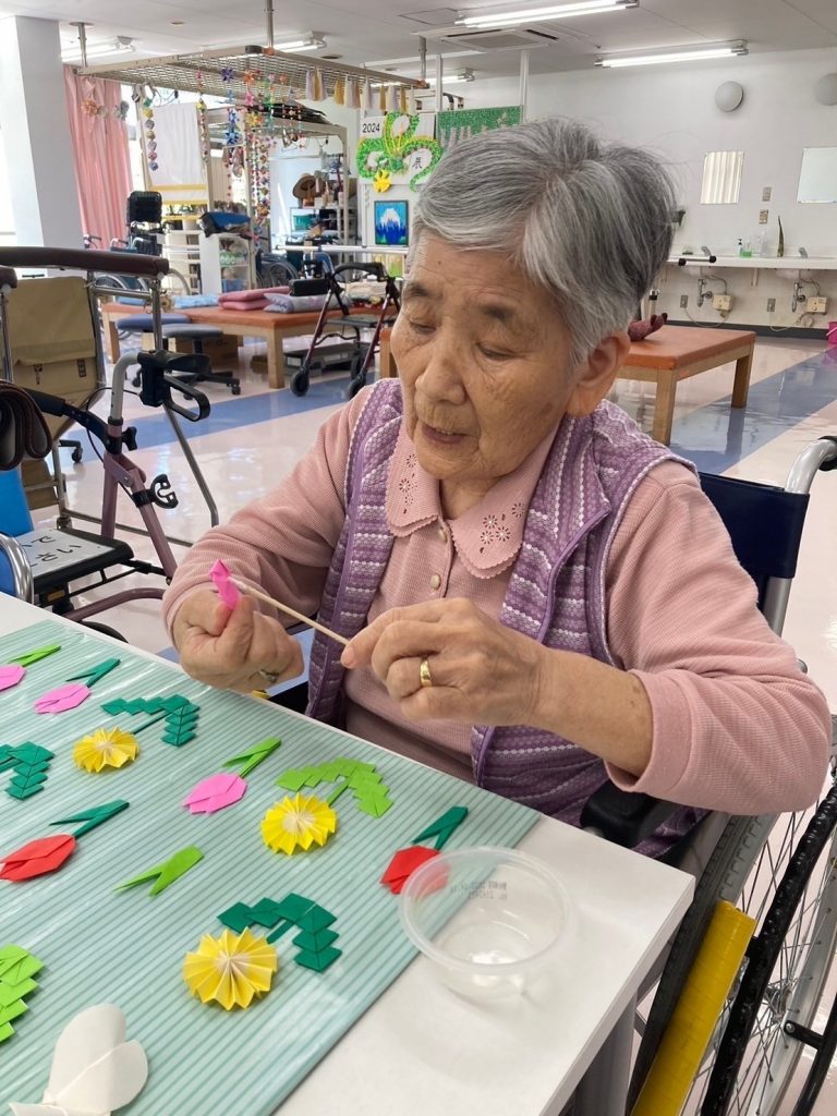 春の花【折り紙手芸】【2024年4月】 さくらの郷 2024.04.192024.11.18 季節は春となり、入所者様に春の花の飾りを作っていただきました。 皆さま集中して取り組んでくださいました! 完成した作品は1階リハビリ室に飾らせていただき、見る人に春を感じていただいています🌷