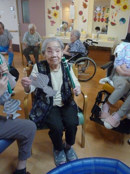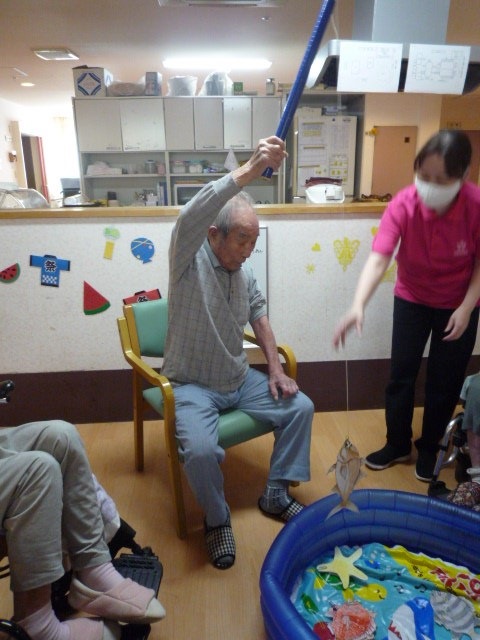 グループホームさくらでは夏祭りとして施設内で魚釣りや射的、輪投げのレクリエーションを行いました。