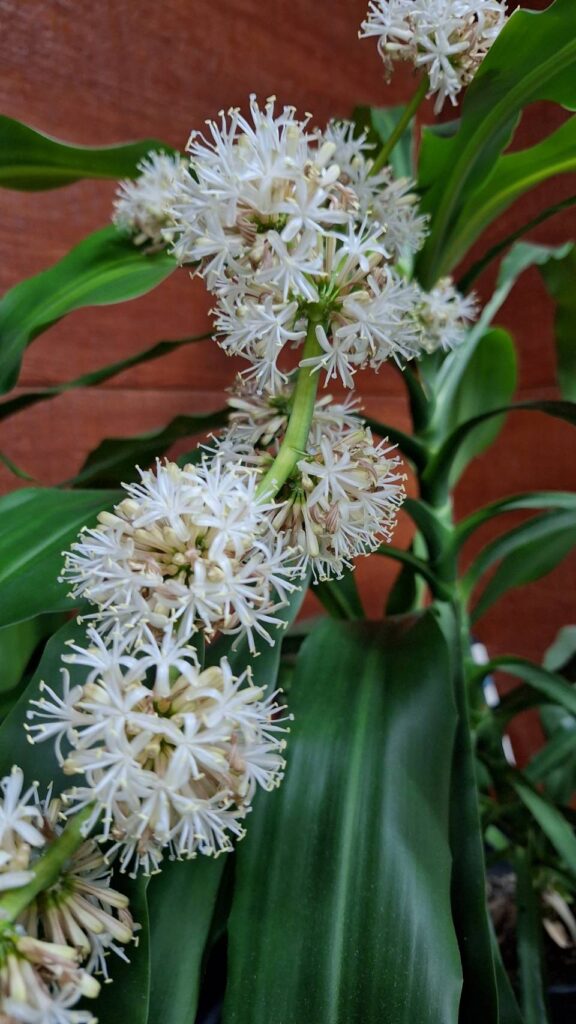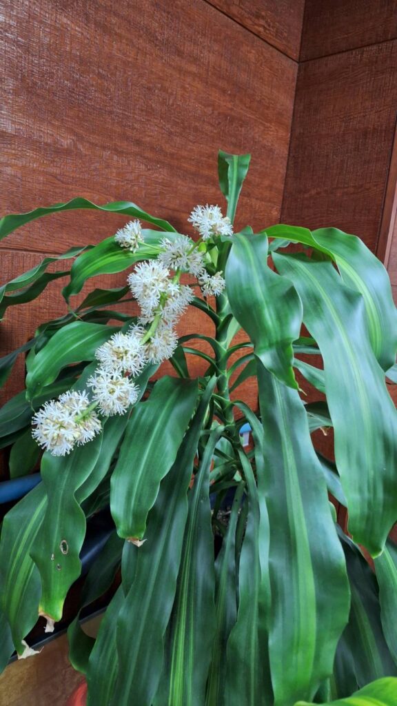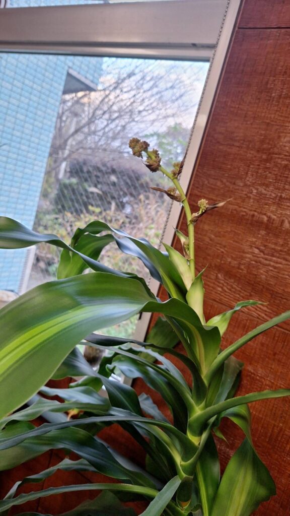 幸福の木と呼ばれる「ドラセナ」(特にマッサンゲアナ)は、めったに花を咲かせないそうです。
