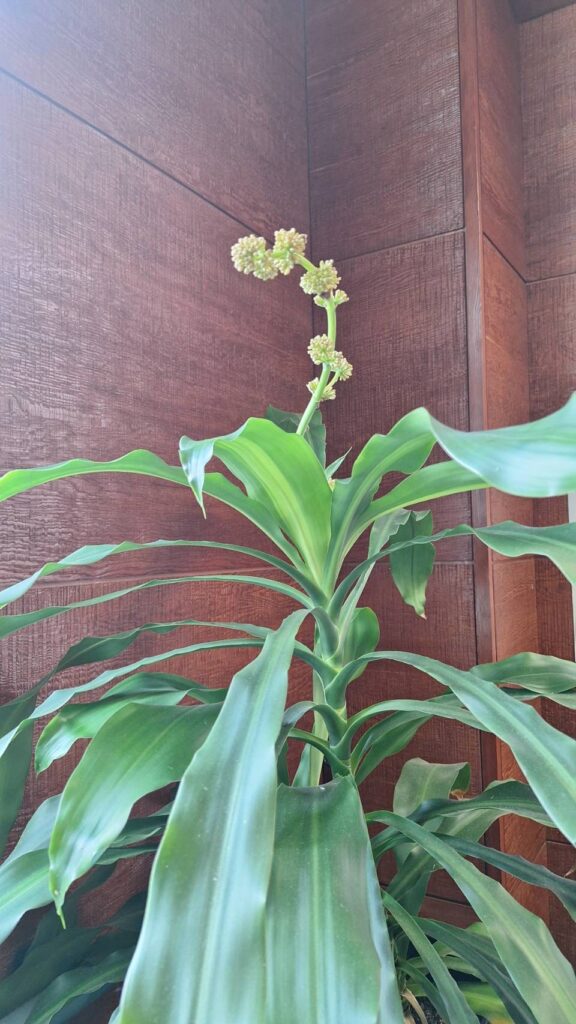 さくらの郷の事務所で育てている幸福の木に花が咲きました!