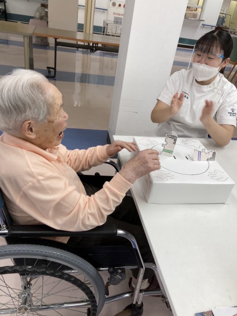 とんとん相撲【2022年10月】 さくらの郷 2022.10.052024.11.18 理学療法士の実習生がとんとん相撲を作ってきてくれました。 入所者様と「はっけよーい、のこった!」 笑顔で楽しまれる様子を見て、温かい気持ちになりました。