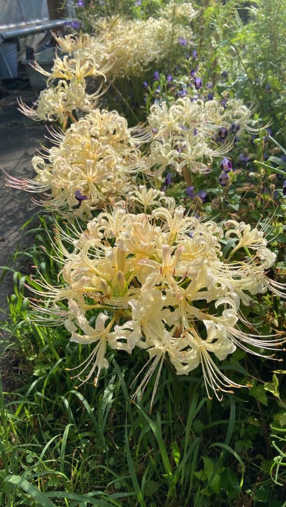 白い曼珠沙華【2023年9月】 さくらの郷 2023.09.212024.11.18 さくらの郷の庭に白い彼岸花(曼珠沙華)が咲きました。 「白い曼珠沙華や珍しいなぁ」「綺麗やなぁ」と見てくださった入所者様は喜ばれていました! ”暑さ寒さも彼岸まで” 暑い夏は終わりを迎えています。