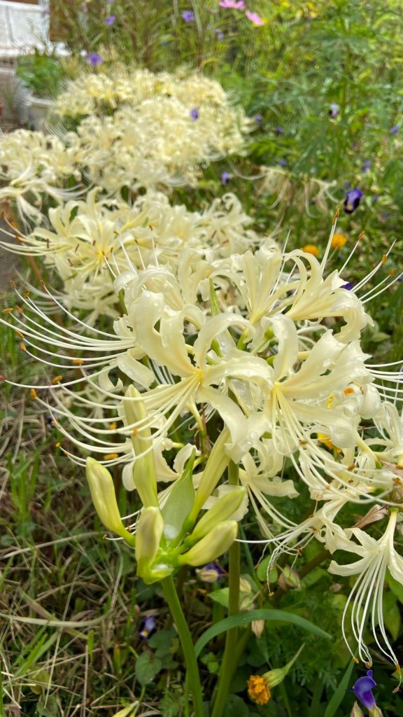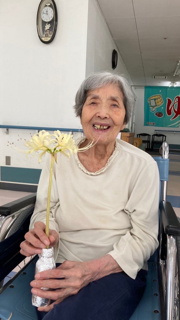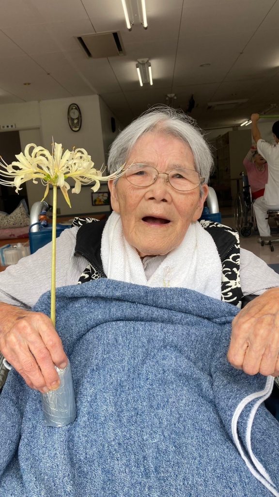 白い彼岸花(曼珠沙華)【2024年10月】 さくらの郷 2024.10.022024.11.18 さくらの郷の中庭に白い彼岸花(曼珠沙華)が咲きました!✨ 入所者様に見ていただき、記念に写真を撮らせていただきました📷✨ 皆さまいい顔をされていました☺ 「暑さ寒さも彼岸まで」 秋が深まってくる時期ですね🍠